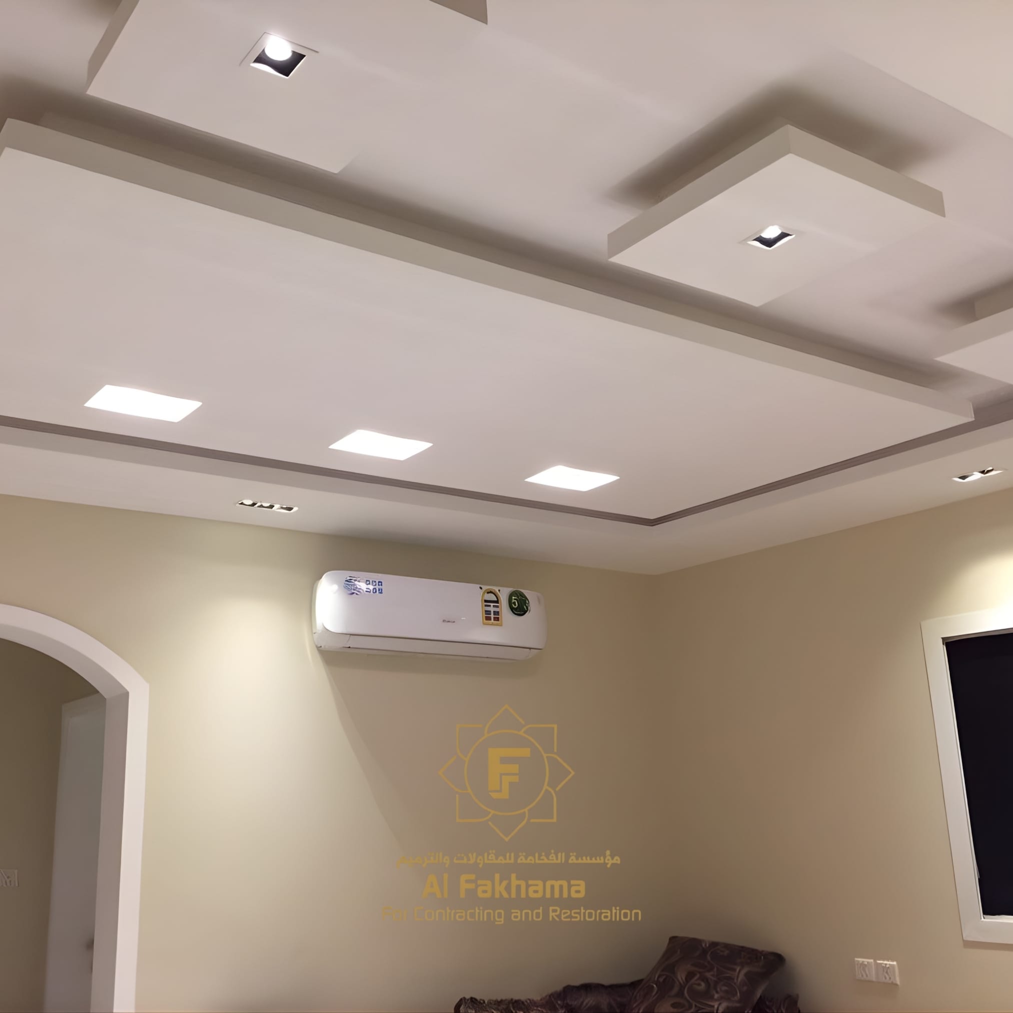 - الأسقف المتعددة المستويات: إبداع في تقسيم المساحات بإضاءة ذكية